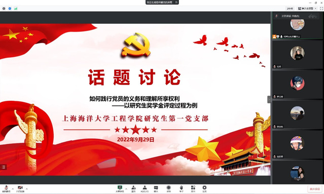 最后,结合本次研究生奖学金评定过程进一步探讨了在实际生活中我们党员应如何践行党员的义务和权力进行展开讨论,广大党员同志分别就奖学金评定过程中党支部支委的工作、学生党员的发展情况等进行了交流发言。大家表示,党员的权力和义务是相对的,作为一名党员,首先应做的是履行党员义务,在平常时候争做先锋,在危难时刻挺身而出,履行了义务的同时也会获得相应的党员权利。此外,林浩涛说到,他作为两个积极分子的培养联系人,对积极分子的要求是定期结合最近实际生活中的认知感悟和最近的学习科研情况采用文字汇报的方式进行沟通,他觉的这种方式能较大程度上了解积极分子的最近真实情况,对他们能有“真正的认识”。