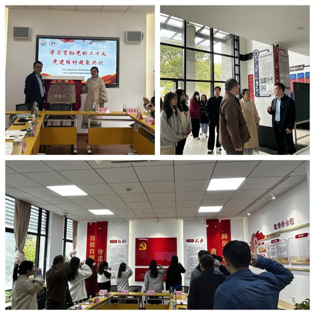 共建仪式上,观看了36365线路检测中心入口视频介绍,双方支部书记分别介绍了各自党支部的基本情况、工作特色以及共建后的工作思路。党支部党员代表唐安琪、李梓昭和唐崇策以“学习贯彻党的二十大,争做优秀青年党员”为主题进行了学习分享。会上,上海电机学院外国语学院团总支书记余志鹏结合学生活动和理论学习,与党员同志进行了交流沟通,提出要结合学校学院特色,积极打造党团联动品牌,进一步创新学生主题教育形式,加强对学生思想价值引领。共建仪式上,机制学生党支部书记毕杨意,外国语学院第四党支部书记朱丹代表双方支部进行了学生支部共建揭牌。最后,全体党员郑重在党旗下重温入党誓词。